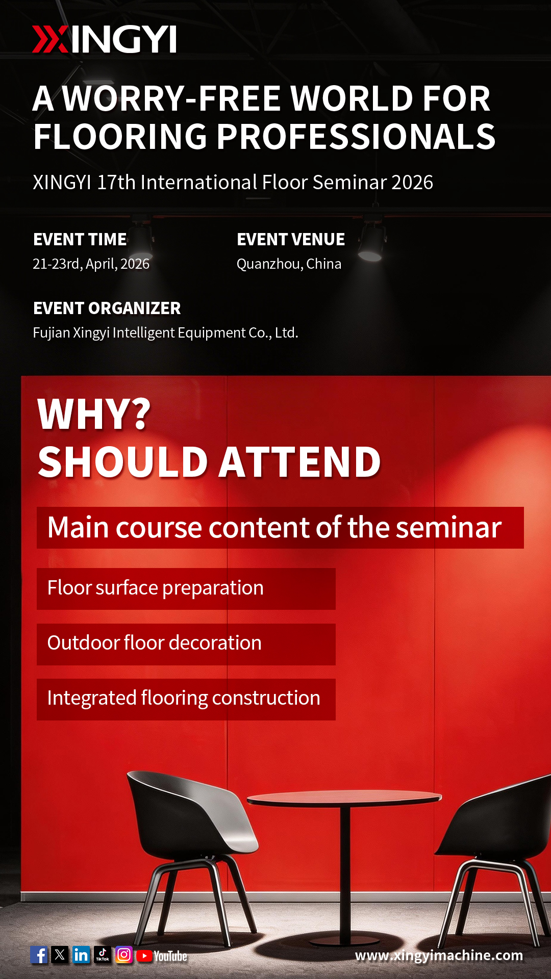 QUANZHOU, China – XINGYI, Asias leading manufacturer of floor grinding equipment and concrete surface preparation solutions, has announced the first two featured speakers for its 17th International Floor Seminar 2026. The flooring industry conference will take place April 21–23, 2026 at the company headquarters in Quanzhou, China, bringing together flooring contractors, construction professionals, and industry peers from around the world.