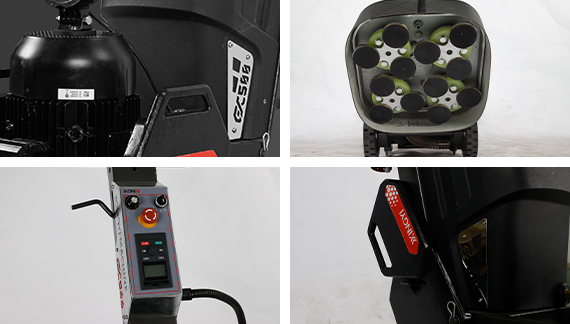 Single phase/three phase rotary machine, with a 500mm working width, powerful motor equipped by 4 counter rotation grinder heads, gear box driving, simple machine for your middle size project. Foldable handle and adjustable weight iron and LED light make your working more efficiently and easy.
