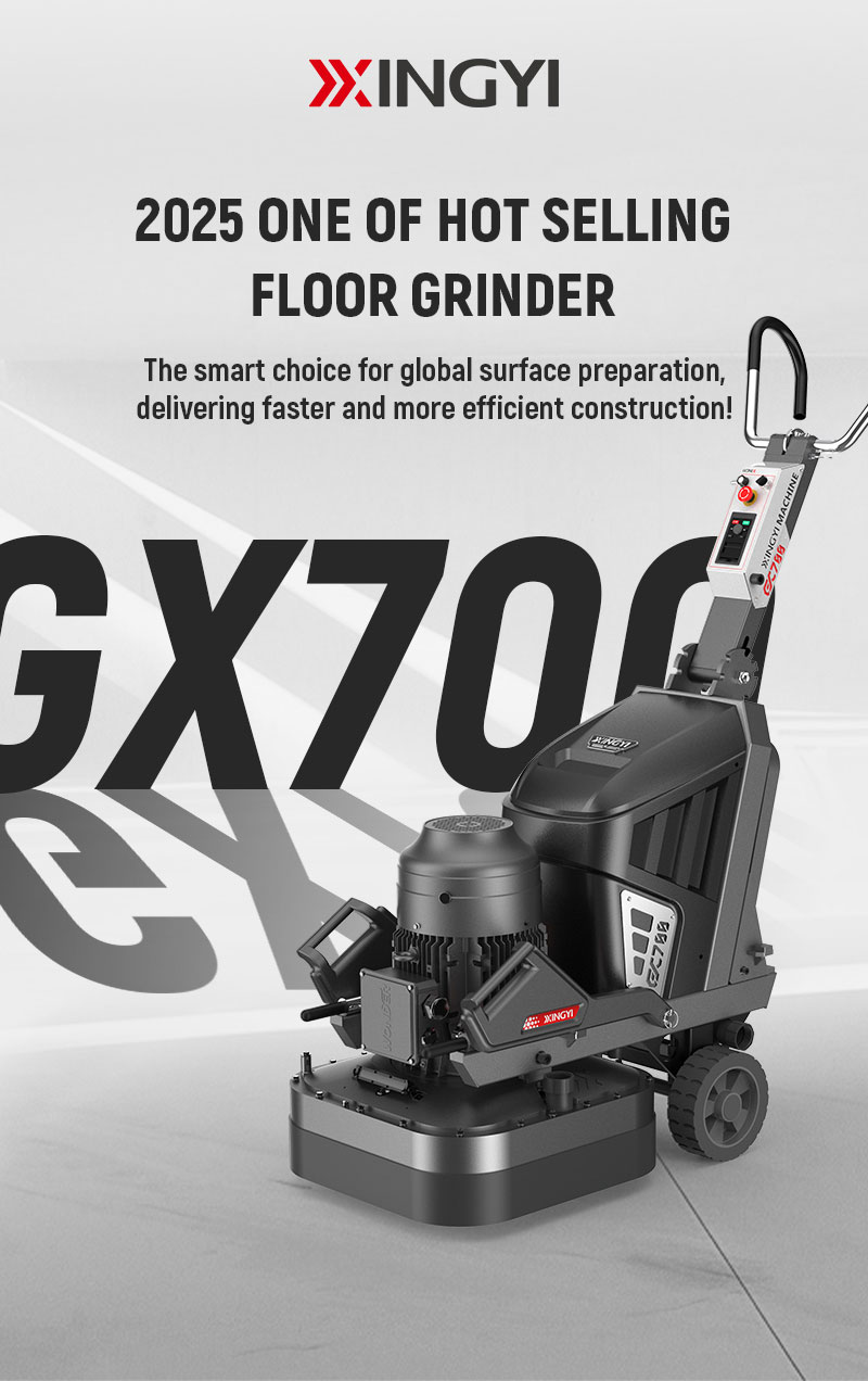 The GX700 Concrete Grinder, the latest innovation from XINGYI Machine, is a square-head 4-disc grinding powerhouse designed for ultimate performance and reliability. As an upgraded successor to the market-proven GX650 (with over a decade of industry validation), this machine features an integrated gearbox and chassis design that delivers exceptional efficiency and ultra-low failure rates.