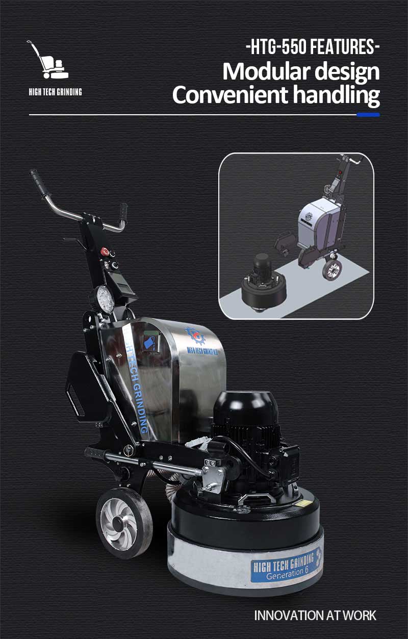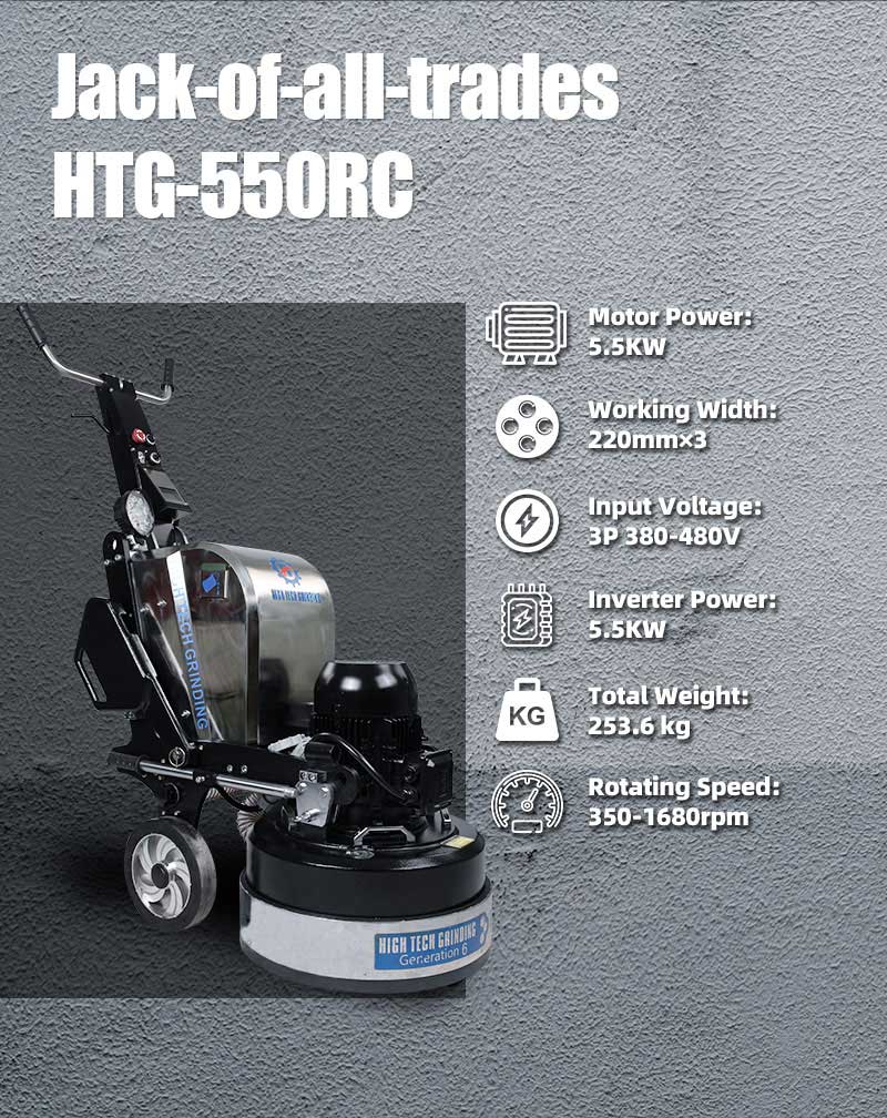 HTG 550 is one of the most popular machines in HTG grinding line thanks to powerful single-phase motor and 3 heads planetary gearbox. With 3 positions weight iron, you could adjust pressure during grinding and polishing procession.