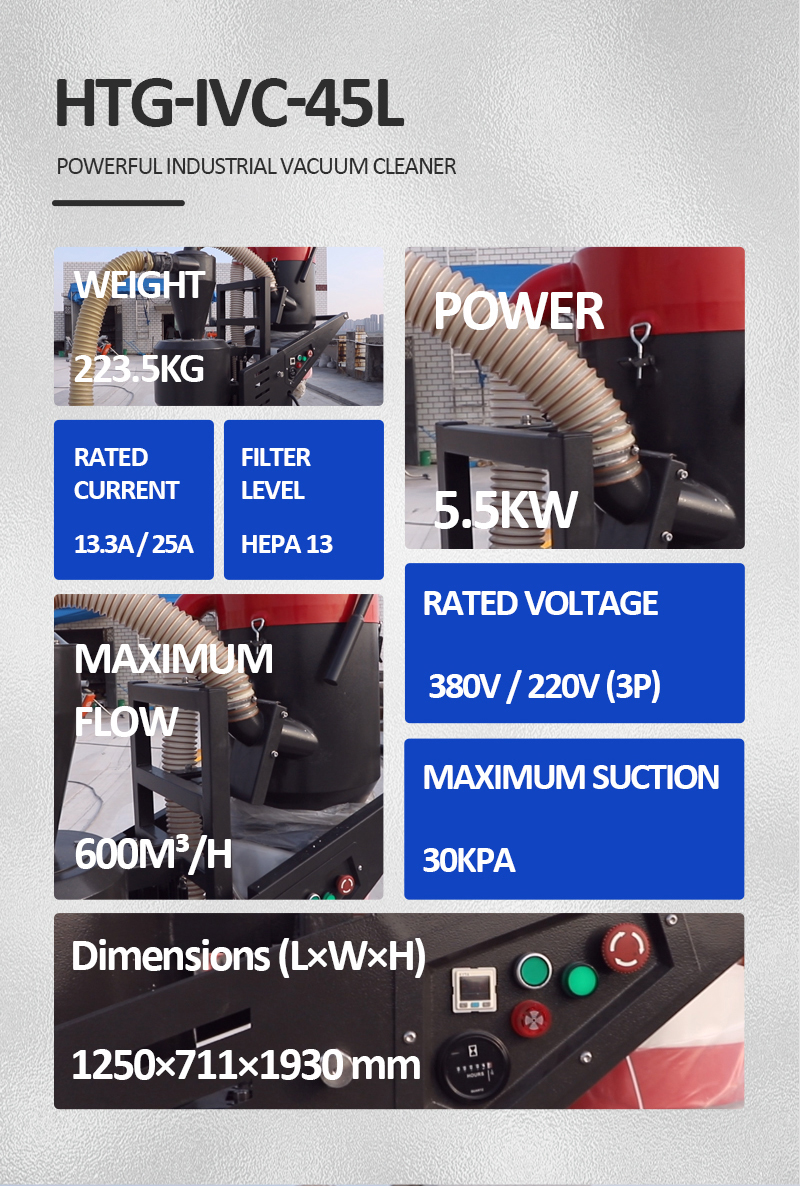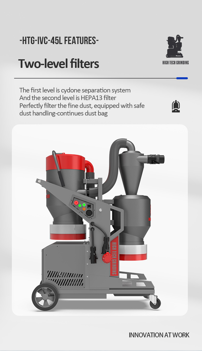 With Liftable design, and two-level Filters,first level is cydone separation system,and second level is HEPA13 filter,perfectly filter the fine dust.
