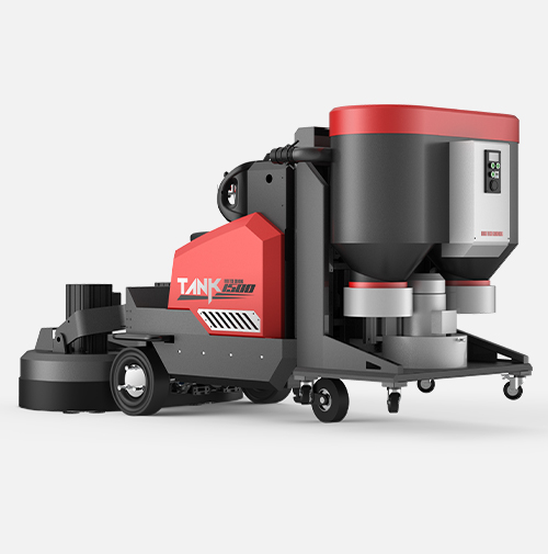 Tank-1500 floor grinding machine embarksa new era of the working way for floor grinding and polishing jobs. Thegrinder is grinding head consists of two modified HTG-800 heads, the grindingwidth is 1550mm and the motors are 18.5kW each that is incredibly effective andgrinds large areas in a short time, which means huge time-savings for theclient.