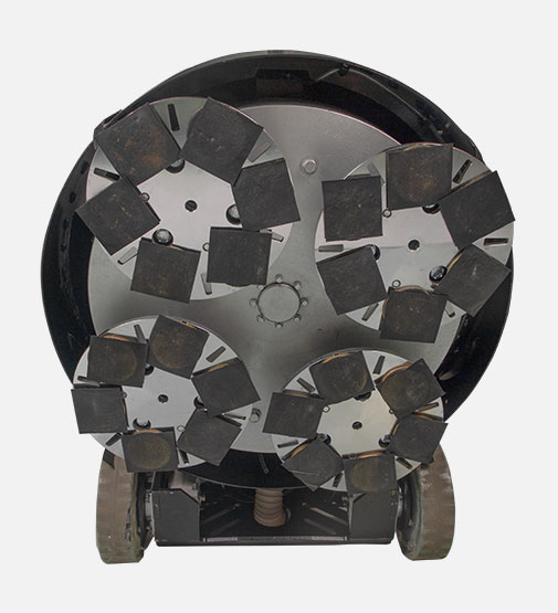 The remote control sets the operator free to manage hoses and cables while still grinding, for up to 40% higher productivity. With our patented gear-drive gearbox design, this is a powerful choice for most grinding jobs, both industrial and commercial. The planetary 4-head system delivers extreme productivity. Suitable for all applications: floor prep, grinding and polishing. Almost 1meter wide (955mm) grinding path, 4 heads, gear drive, 750kg (plenty of grinding force), remote control and you can sit on it like the Floor King. It is so friendly with effortless Transportation by Battery Powered Transportation; with Swing weights, the most practical weight design and multi-functional heads for different pads.