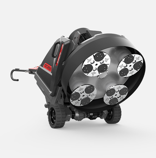 The GX858 is equipped with a dual-drive grinding system and a 278 mm grinding disc, delivering strong and consistent grinding performance. A battery backup system maintains basic functions after power outage, while the transportation wheel design enables easy movement on site.