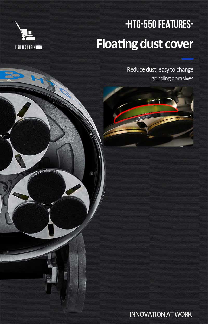 HTG 550 is one of the most popular machines in HTG grinding line thanks to powerful single-phase motor and 3 heads planetary gearbox. With 3 positions weight iron, you could adjust pressure during grinding and polishing procession.