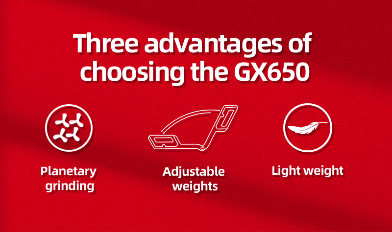 The GX650 has 4-heads which works in counter rotary direction and provide smooth of operation and handling. Foldable handle for easier transport and adjustable to your perfect working position. Dual-purpose additional weight makes your construction easier.