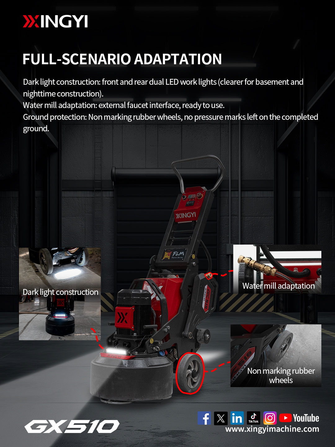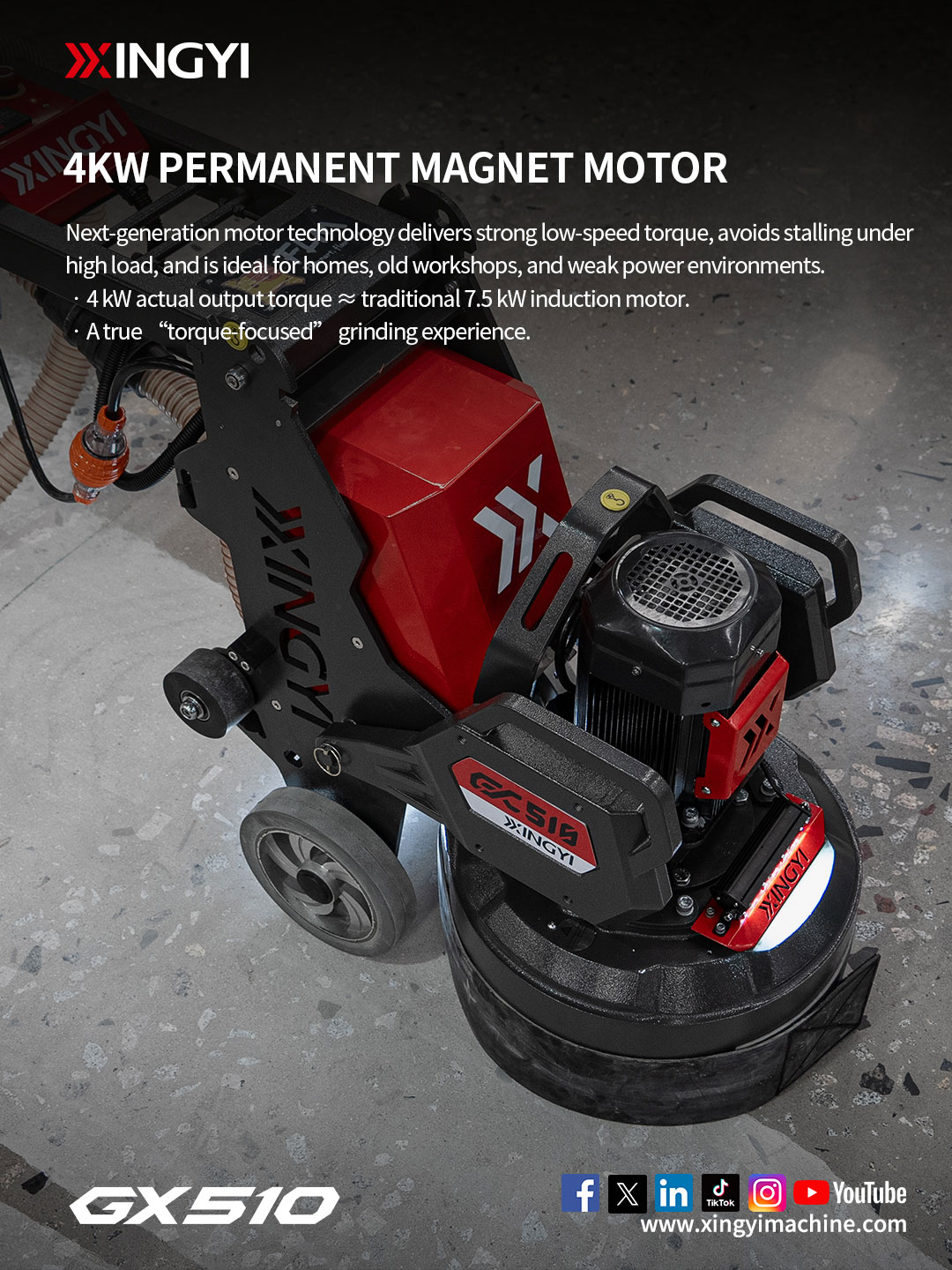GX510 is a professional single-phase grinder engineered for real jobsite power limits.